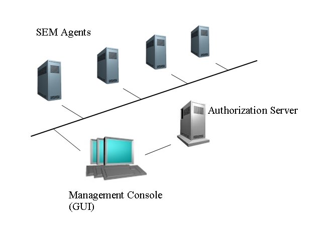 3. Authorization Server: The SEM Authorization Server is at the centre of the SEM architecture. To use SEM, a user has to start the SEM Management Console on their workstation and log into the SEM Authorization Server using a SEM username and password. Each SEM user account has a profile that defines a set of permissions granted to the user. On successfully logging into SEM the appropriate set of SEM display windows and scripts that the user has permission to use are downloaded from the Authorisation Server into the Management Console, and from there will interact with the user and the agents that the user is permitted to connect to. When SEM scripts are created or modified a single, central, copy is retained at the SEM Authorization Server.
